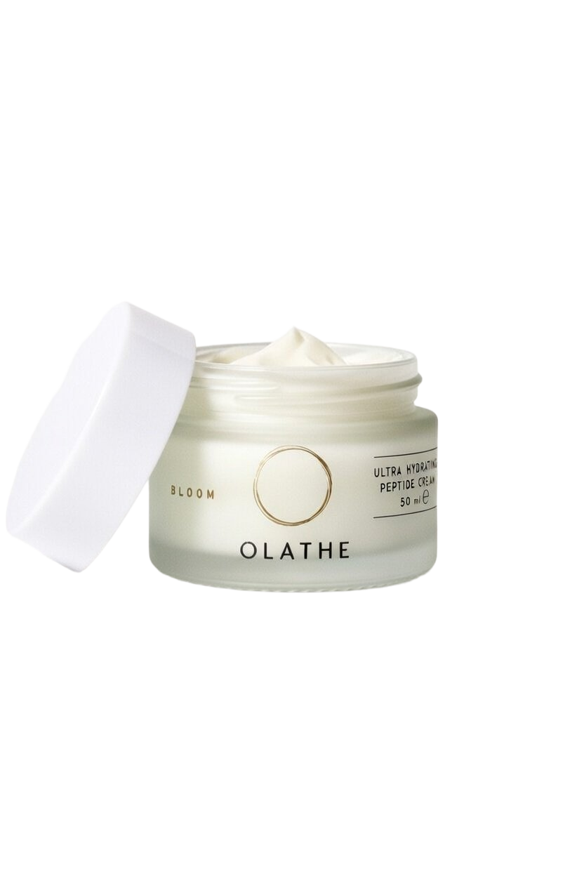 Olathe Bloom Ultra Hydrating Peptide Cream, peptitler, hidrolize kolajen ve çok katmanlı hyaluronik asit ile cildin nemini artırır, elastikiyetini destekler ve pürüzsüz bir görünüm kazandırır.